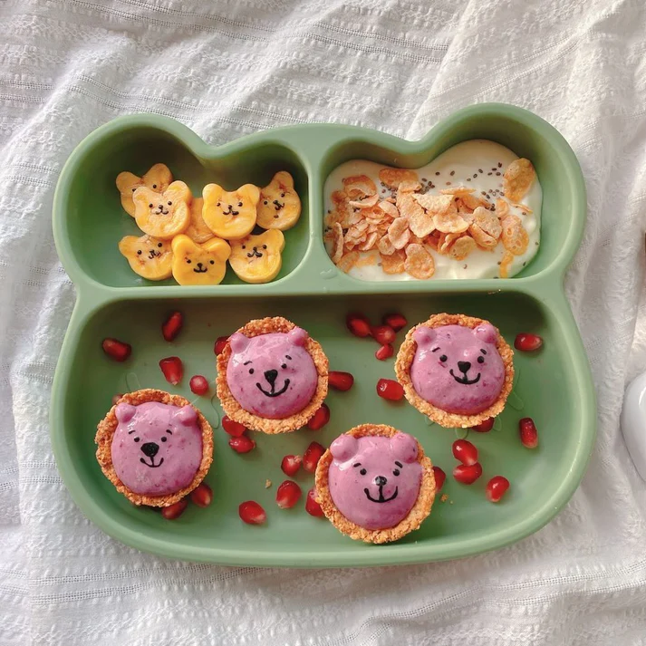 This Sage Bear Plate features our popular bear character with sleepy eyes that kids have grown fond of in the We Might Be Tiny range.
